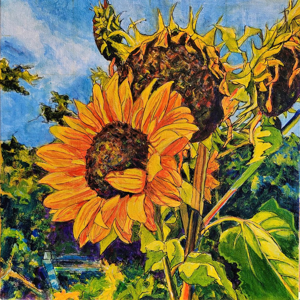 Sunflowers, 12x12". Acrylic on canvas.$150
